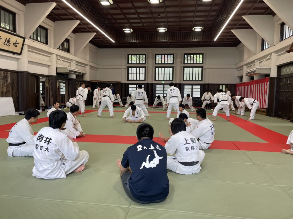 13時より両チームのアップが始まりました。東大は立ち技主体の準備運動。対する京大は、寝技の基本動作中心の準備運動が対照的でした。