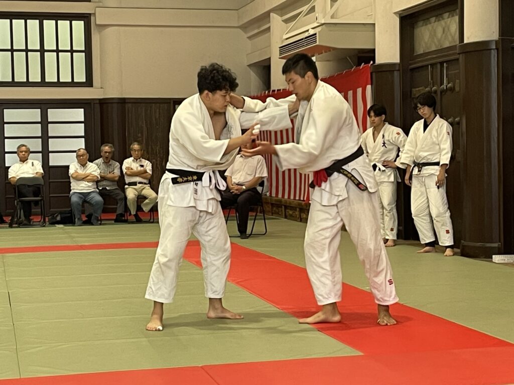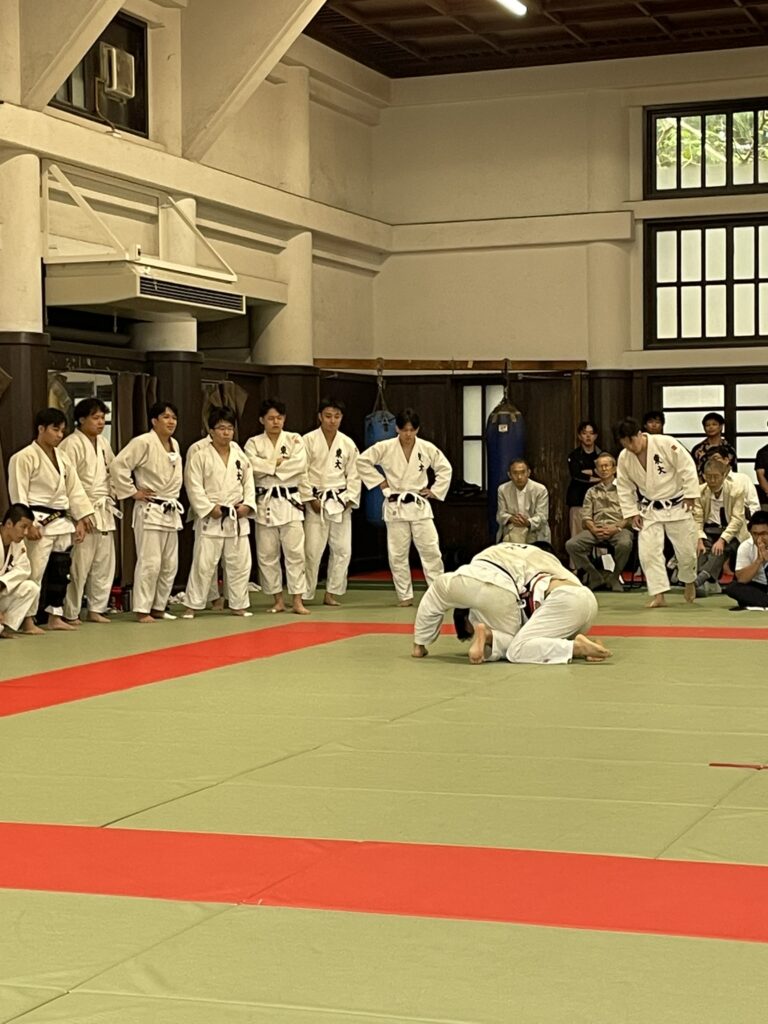 つづいて、親善試合として、七帝ルールだけど、点取り試合の七人戦。1回生の八田くんが2回出るオーダーも将来に対する期待の現れでしょうね。